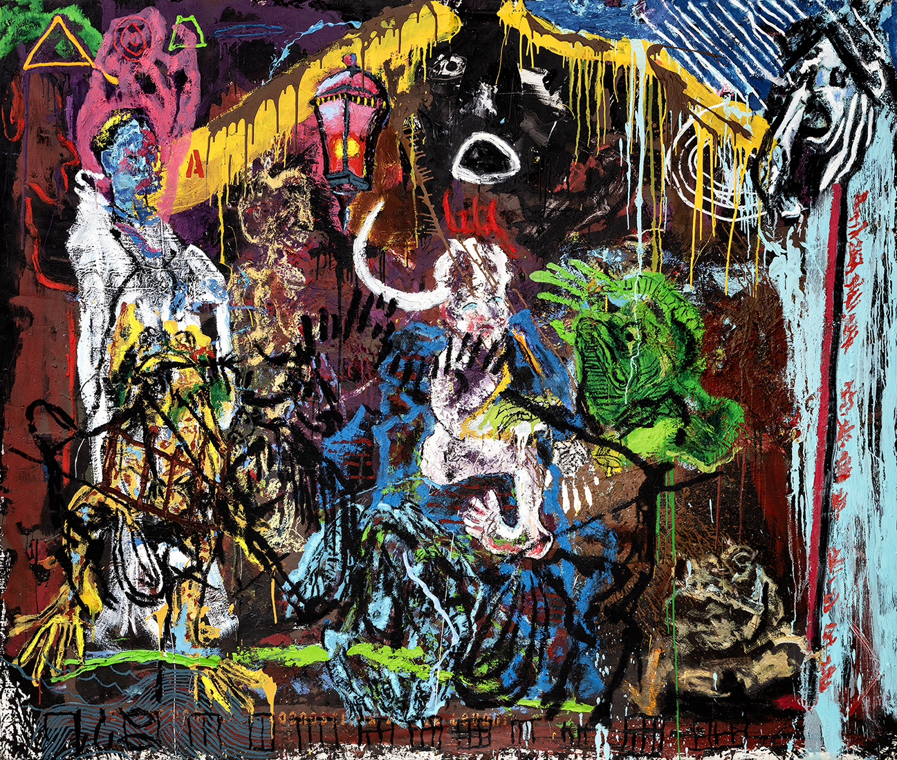 Dedicated to childhood in contrast to prehistoric art, forty fiery, baroque and complex canvases weave a disconcerting and singular cave, impregnated with the original power of painting. From this whirlwind emerges a complex reflection that the artist, a new father, questions on the innocence of art and man in the grip of history and memory, between mythology, literature and anthropology. To do this, Orsten Groom called the great prehistorian and specialist in cave art, Jean-Michel Geneste (former curator and director of research at the Lascaux cave, heritage and director of the National Center for Prehistory and the multidisciplinary study program of the Chauvet-Pont d’Arc cave), with whom a lengthy interview has been reproduced in the catalog published on the occasion.