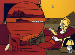Born in 1935 in Bologna, Valerio Adami is a leading figure in the Narrative Figuration movement. His acrylic paintings are characterised by blocks of colour outlined in black evoking the themes of travel, music, literature and theatre. The notion of mystery is expressed in the many literary references that populate the paintings, a notion that always plays a central role in his work, which he defines as a philosophical questioning.