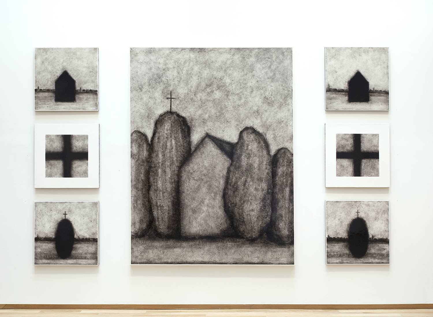 Born in 1957, Loïc Le Groumellec made his name with his iterative minimalist paintings whose shadowy shapes cast by megaliths and houses constitute a language of their own, almost an obsession. He has been ceaselessly exploring these themes for the past thirty years, creating a body of work almost series-like in nature and that speaks to us of a quest for utter perfection.