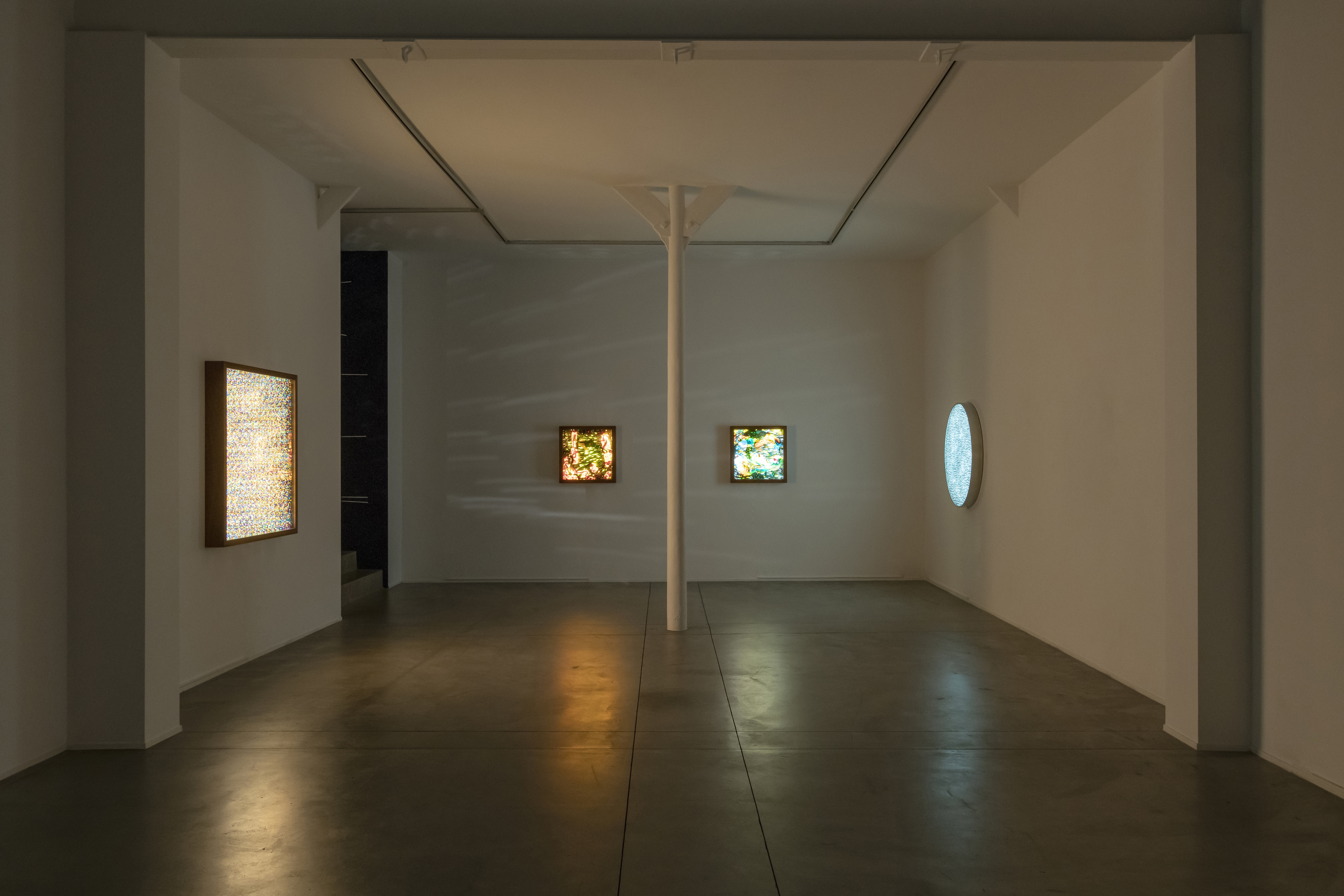 He contrasts the manufactured object with the arbitrary nature of the act, the uniqueness of the stroke, the fragility of the being. The astral voyage offered by the exhibition concludes with a new installation. Hand-painted constellations are scattered across the walls of the narrow room plunged into darkness. A glitter ball sculpted in the shape of planet earth spins slowly. When we observe the stars, we get to brush against the deepest secrets of the universe, the artist explains. Both sublime and faintly unsettling, these imaginary maps question our anthropocentrism, asking where the origin of our civilisations lies, where we think the place of human beings should be in a constantly expanding universe.