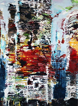 Philippe Cognée was born in 1957 in Nantes, France, where he lives and works. His paintings use wax that is heated and crushed, producing a blurred effect and raising questions such as the thinning away of the image and the human condition in the light of humans’ relationship to their urban environment. The artist draws inspiration from photos and videos of elements such as motorways, buildings and aerial shots. His work questions the role of art in a society where new digital technologies have ushered in the era of the image, both omnipresent and diminished.