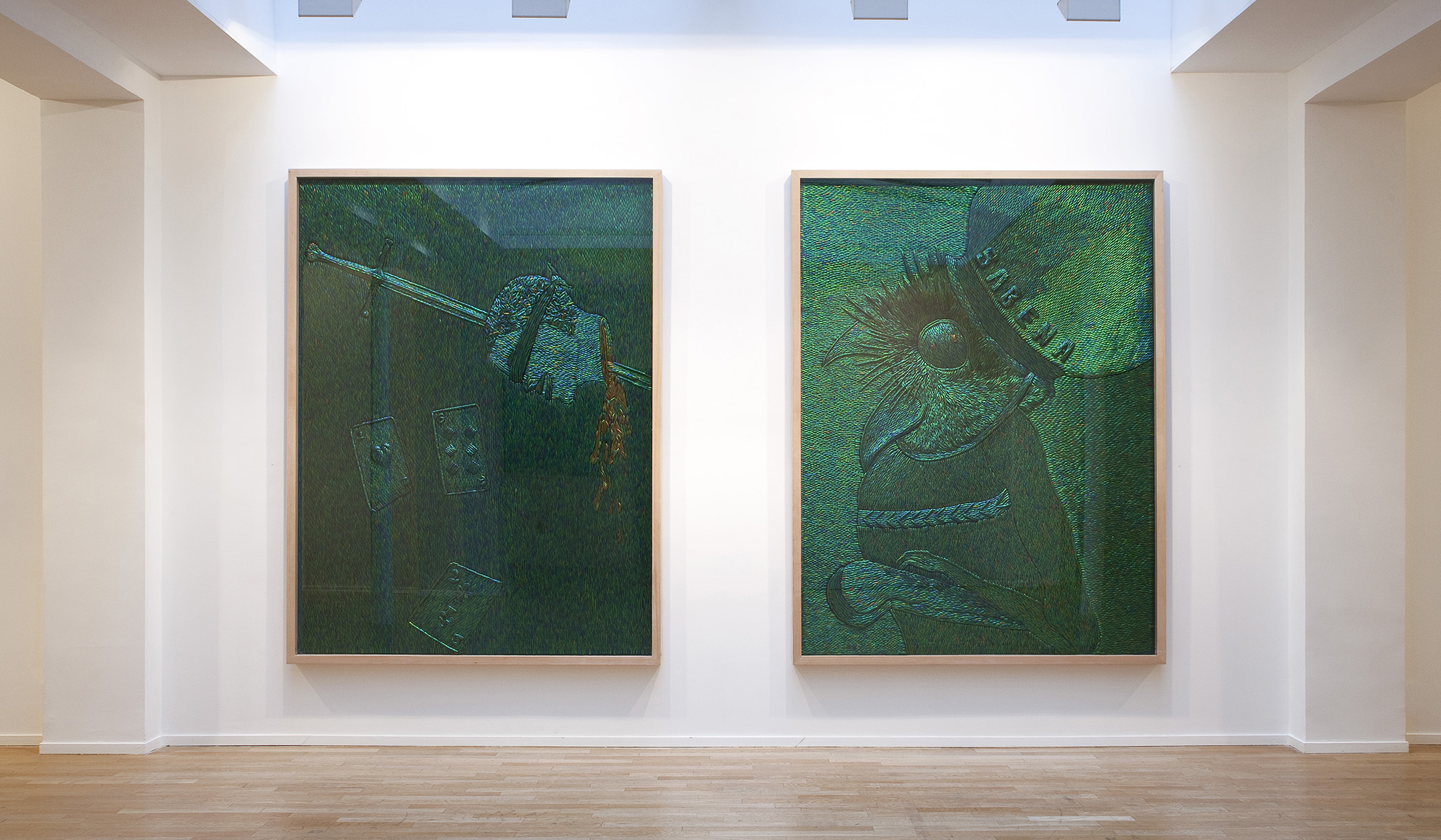 The large beetle works display what Ekhard Schneider has described as ‘appalling plasticity’. The iridescent material offers a constantly changing vision that embraces every graduation, from shadow to light. With it, Fabre creates reliefs that echo the impasto techniques used by painters.