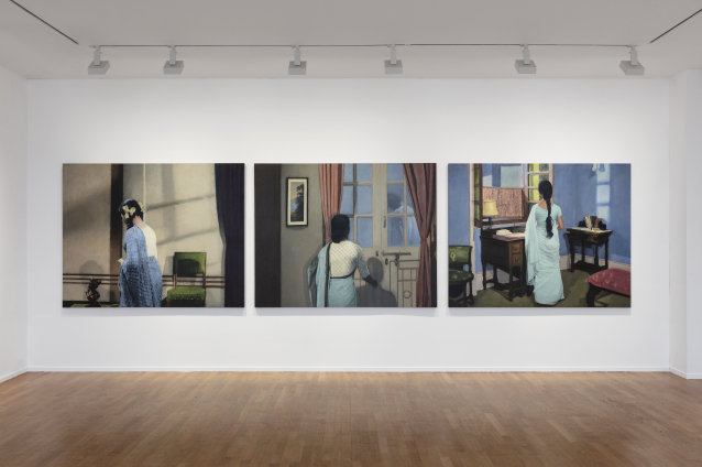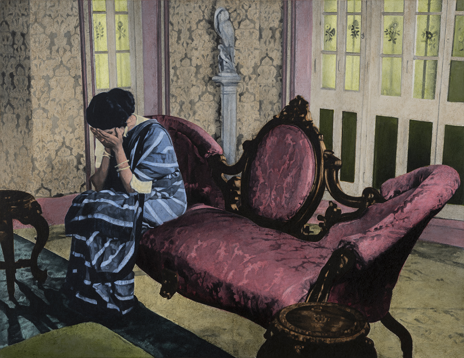 The exhibition’s entry point is the Mumbai movie world of the 1960s that marked the artist’s childhood. The title “I know you. I do. O’ stranger” is inspired by the film Charulata (1964) by Satyajit Ray. The deceptively ordinary chosen scenes are the fruit of complex compositions where the actor’s fame takes a back seat to anonymity.  “A recurring theme in my cinematographic stories,” explains the artist, “the characters encounter each other just like strangers.”