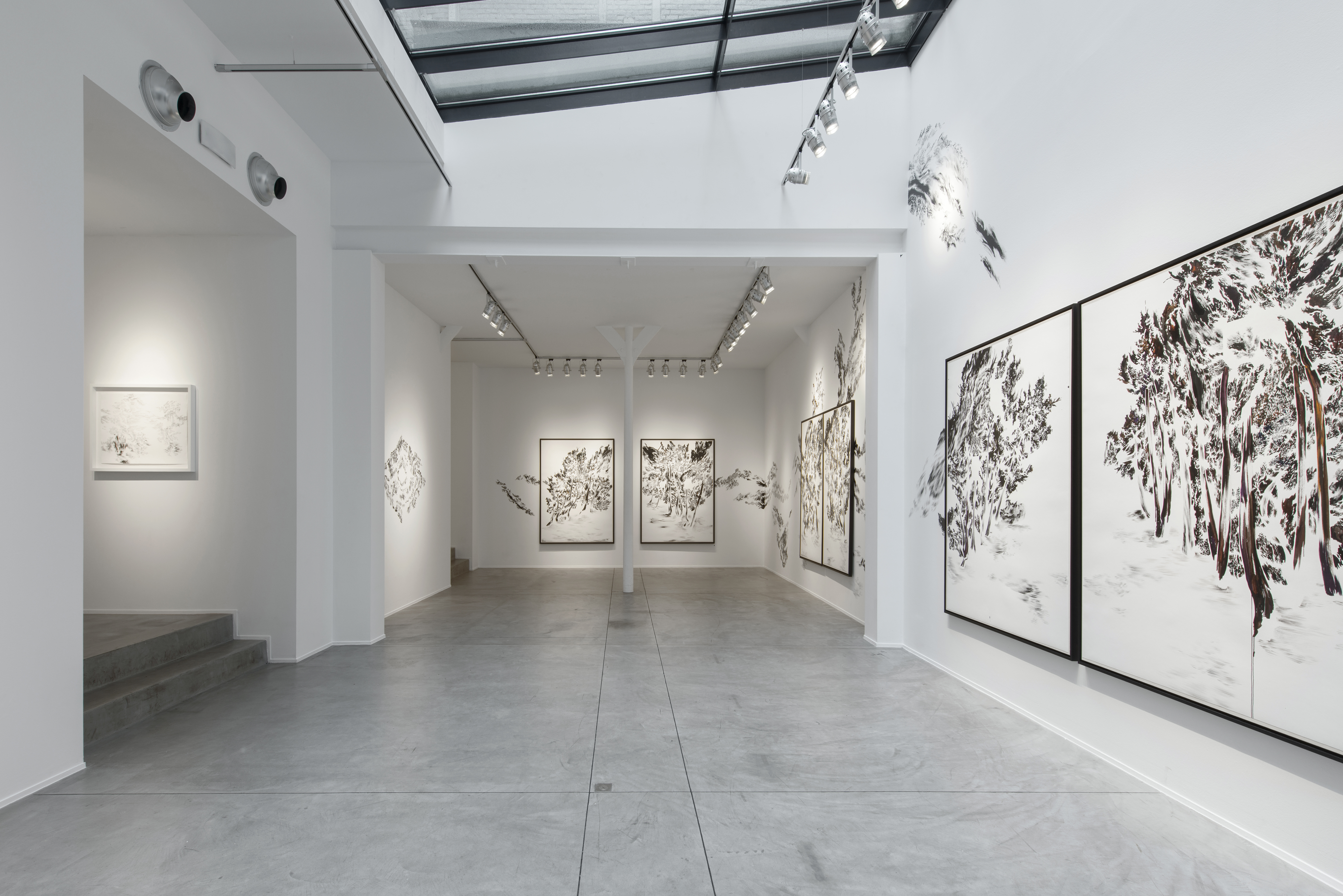 This autumn, Galerie Templon’s Brussels space is hosting Abdelkader Benchamma’s first solo exhibition in Belgium. The artist is known for his use of black ink drawings, site-specific and often ephemeral, which interact and transform exhibition spaces into vast, strange landscapes, both physical and mental, shot through with subtle yet chaotic energies.