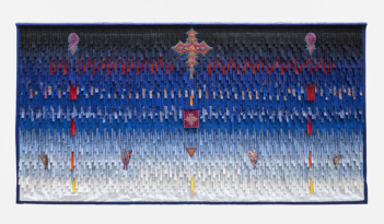 Abdoulaye Konaté, known as the Master, was born in 1953 in Diré, Mali. He is a leading figure on the African contemporary art scene. In the 1990s, he swapped canvas and brushes for needle and thread as fabric developed into his favourite medium. His work combines Western modernism with African symbolism, addressing social and political issues such as religious fanaticism and social justice with a complex and shimmering palette that has become his signature over the years.