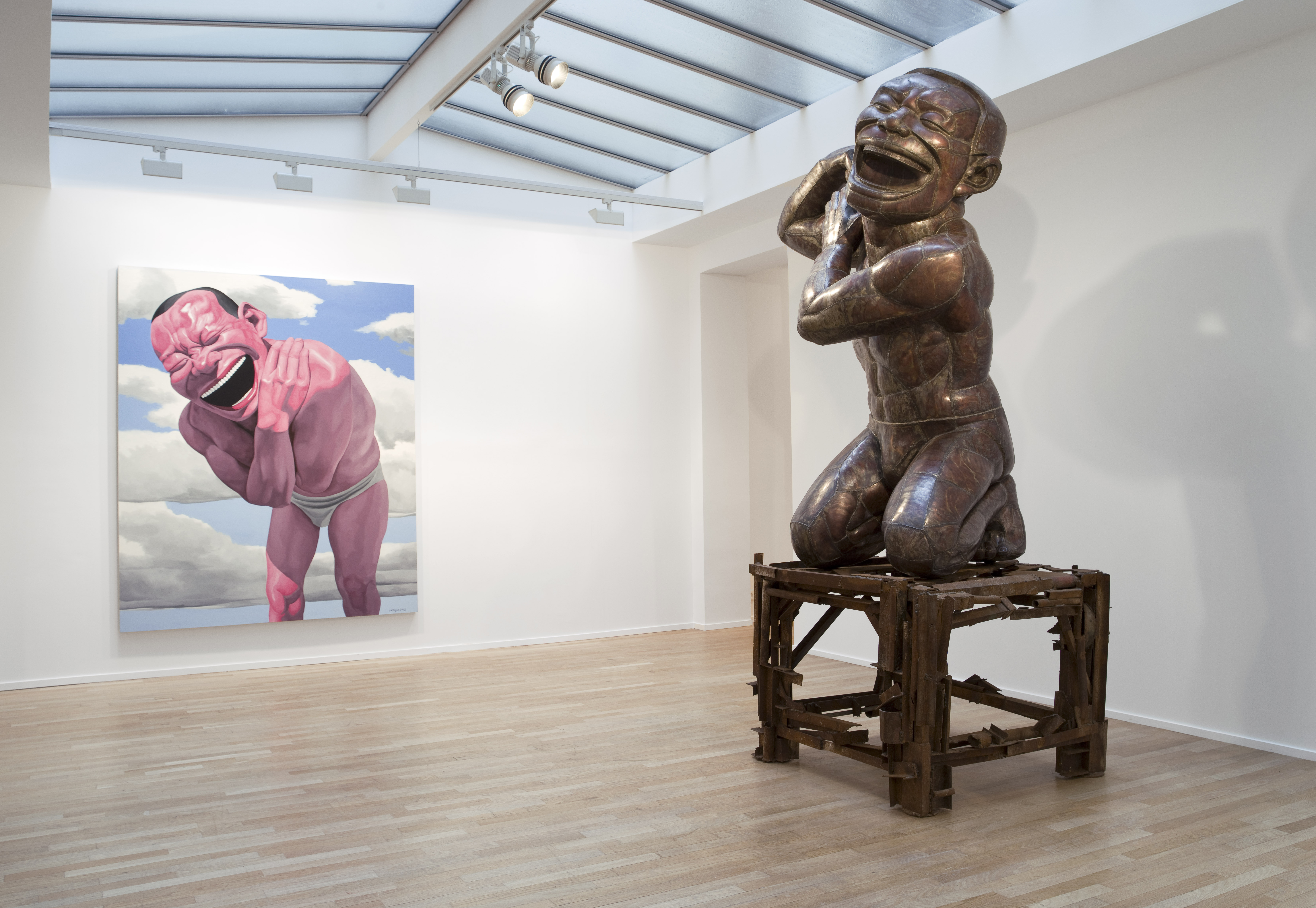 The new series of works on display at the gallery include the painter’s enigmatic creations, his bright pink portraits where he roars with laughing against a background of blue skies studded with pristine clouds. The artist makes use of cinematographic close-ups as well as a play of associated images where death is an inescapable presence. He also proposes improvisations that explore the history of Western and Eastern art by means of a variety of references, ranging from The Women of Algiers to Chinese mazes. The artist’s monumental sculptures, echoing the iconography of his paintings, will be on show for the very first time in France.