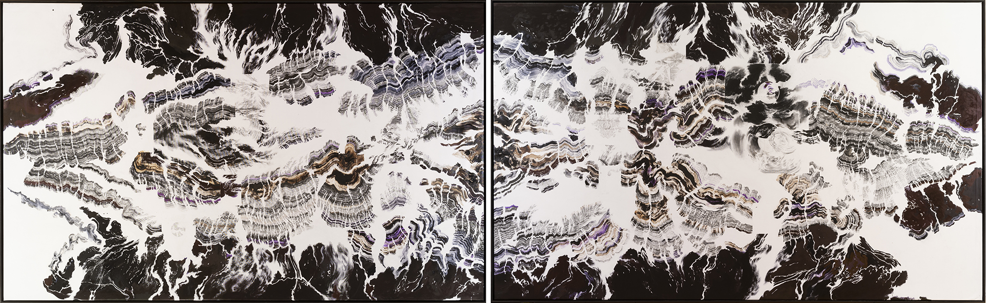 Ses vastes fresques éphémères sont réalisées directement à l’encre sur les murs, transformant les architectures en un ailleurs, un monde de flux et de paysages mentaux, entre le reconnaissable et l’indiscernable, à la frontière entre le physique et le symbolique. Réflexion sur les ressorts de la perception, ses œuvres explorent nos systèmes de connaissance, la survivance des mythes et des croyances, mais aussi les réminiscences, persistances rétiniennes ou neuronales que ce soit sur les murs des musées ou sur des feuilles de papier.
