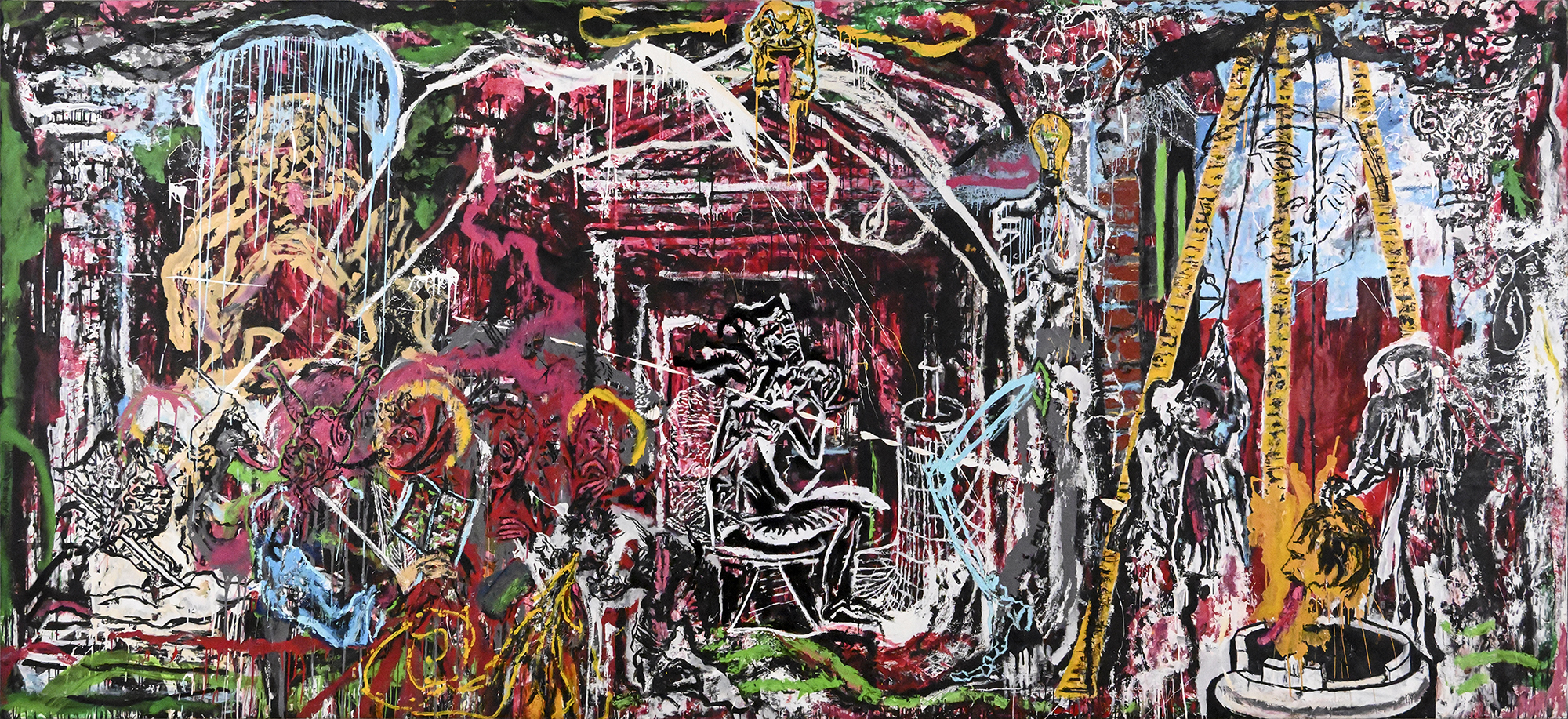 Né en 1982 en Guyane, Simon Leibovitz - Grzeszczak est un artiste pluridisciplinaire aux origines judaïques, russo-polonaises. A 20 ans, alors étudiant aux Beaux-Arts de Paris, il est victime d’une rupture d’anévrisme qui le laisse amnésique et épileptique. Apprenant pendant sa convalescence qu’il est peintre, il réintégre l’école dans les ateliers de François Boisrond et Jean-Michel Alberola. Dès lors, il se positionne farouchement comme indépendant et développe une œuvre protéiforme qui s’étend à partir de la peinture au film et à la musique. Il collabore avec les commissaires d’exposition Paul Ardenne et Olivier Kaeppelin, le cinéaste Guy Maddin ou encore le poète et traducteur André Markowicz, et produit ainsi plusieurs expositions remarquées en France comme à l’étranger. En 2020, le Centre d’Art ACMCM (A Cent Mètres du Centre du Monde) à Perpignan, lui consacre sa toute première rétrospective. En 2021, il profite du siège instauré par le Covid pour ouvrir avec Olivier Kaeppelin le Cabinet CHROME DINETTE, un showroom privé clandestin à l’adresse parisienne secrète. SIEG MHUND KALUMNIATOR est sa première exposition à la galerie Templon. De juillet à novembre 2022, Le Suquet des Artistes à Cannes lui ouvre l’intégralité de son espace pour son nouveau projet « Limbe (le vroi dans la Nuit) ». En décembre 2023, le Musée Paul Valéry à Sètes lui consacre une rétrospective intitulée "Volcan du comas".