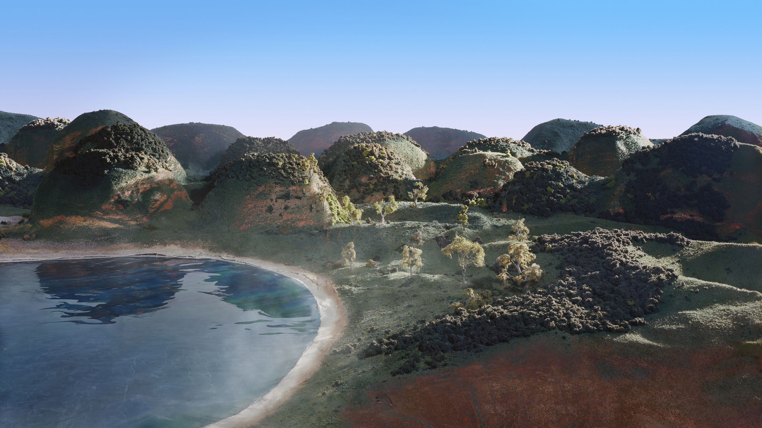 Né en 1953 dans le Michigan, James Casebere vit et travaille à New York. Pionnier de la photographie de mise en scène, ses œuvres, commentaires poétiques de notre société, ne renvoient jamais à une réalité clairement identifiable. L’artiste travaille à partir de maquettes, reconstitutions imaginaires et standardisées d’architectures familières, construites en atelier puis servant de base à ses photographies. Paradoxalement, la beauté plastique de ses photographies renvoie souvent à un sentiment de malaise et de vide.