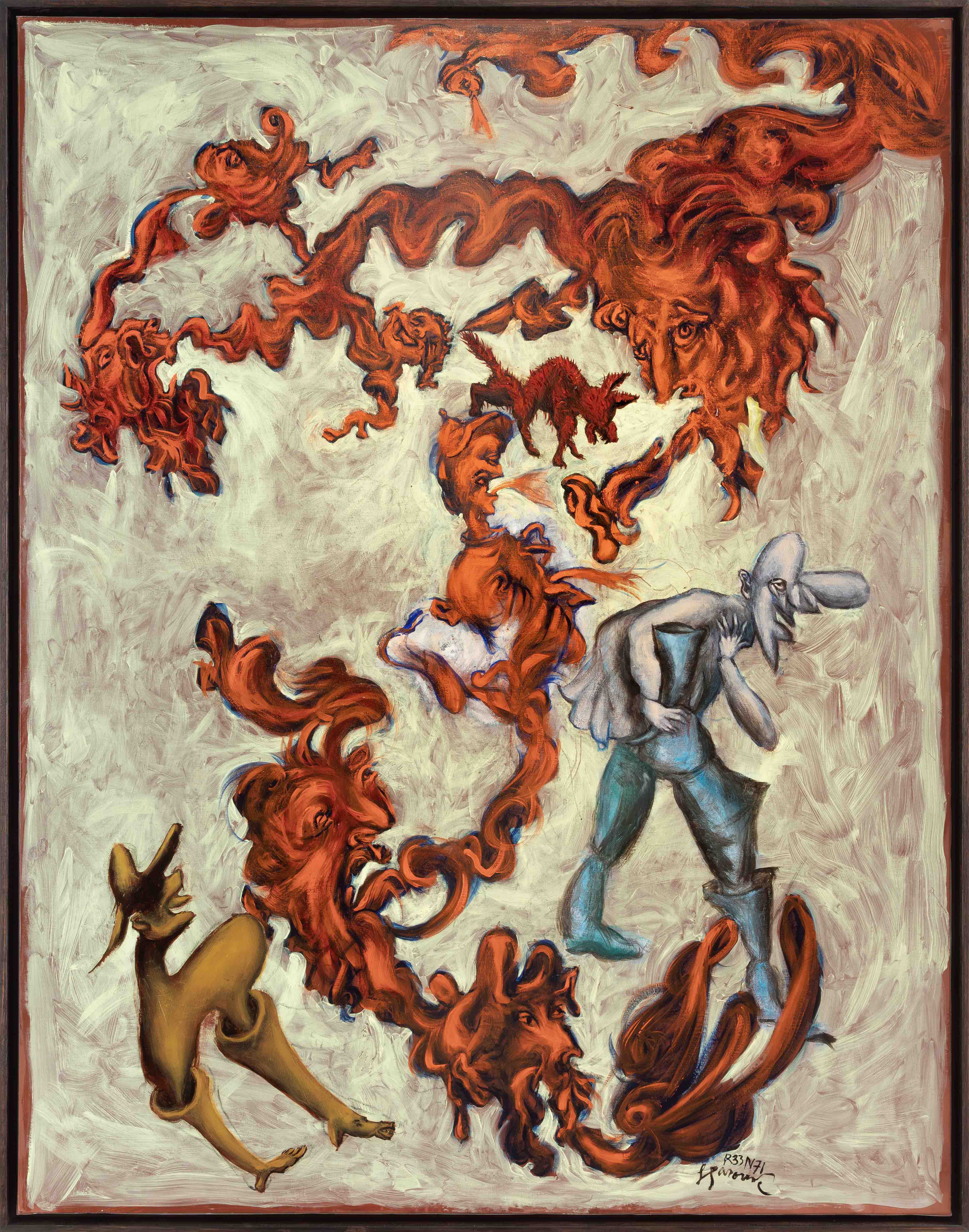 Né en 1946 à Paris, Gérard Garouste vit et travaille entre Paris et la Normandie. Il est l’une des figures majeures de la peinture française. Peintre et sculpteur, il est obsédé par les origines de notre culture, l’héritage des maîtres anciens et les mythes. Son histoire propre est à la base de son travail de “démontage des images et des mots”, de sa préoccupation pour les questions de l’origine, du temps et de la transmission. Ses toiles, faites d’associations d’idées, sont tour à tour inquiétantes et joyeuses, peuplées d’animaux parfois fantastiques et de différents personnages. Ses sources mêlent la Bible, la culture populaire et les grands textes de Cervantès à Rabelais.