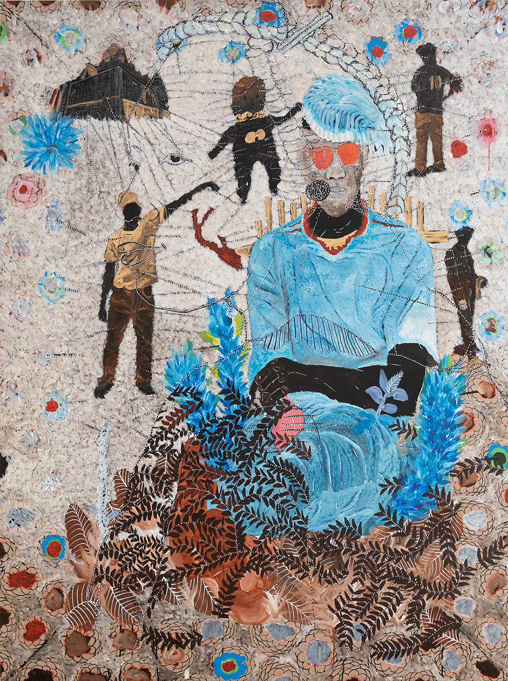 Né au Sénégal en 1977, Omar Ba vit et travaille à Dakar. Ses peintures – réalisées à l’aide de techniques et de matériaux variés – représentent des motifs politiques et sociaux aux multiples interprétations. Son vocabulaire plastique réactive des interrogations historiques et atemporelles tout en élaborant un propos artistique d’une absolue contemporanéité. L’iconographie d’Omar Ba mobilise des métaphores personnelles, des références ancestrales et des figures hybrides. Son travail refuse une narration didactique et cherche, par son caractère énigmatique et son intensité poétique, à exprimer son inconscient et son appréhension symbolique du réel.
