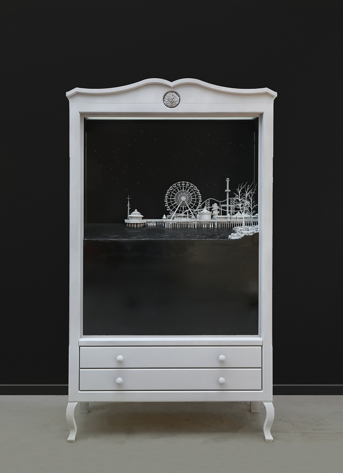 Né en 1969, Hans Op de Beeck vit et travaille à Bruxelles, en Belgique. Il réalise de grandes installations, des sculptures, des films, des dessins, des peintures, des photographies et des textes. Au cours des vingt dernières années, Op de Beeck a réalisé de nombreuses installations monumentales "sensorielles" : des espaces tactiles déserts comme un décor vide que le spectateur peut traverser ou dans lequel il peut s'asseoir, des havres sculptés pour l'introspection. Son travail est une réflexion sur notre société et sur les questions universelles de sens et de mortalité qui y résonnent. Il considère l'homme comme un être qui met en scène le monde qui l'entoure de manière tragi-comique. Op de Beeck souhaite avant tout stimuler les sens du spectateur et l'inviter à faire l'expérience de l'image. Il cherche à créer une forme de fiction visuelle qui procure un moment d'émerveillement et de silence.