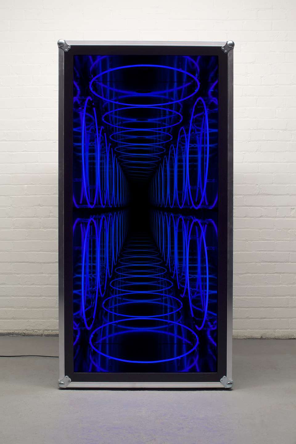 Né en 1972 à Santiago, Iván Navarro a grandi sous la dictature de Pinochet. Il vit et travaille à New York depuis 1997. L’artiste utilise la lumière comme matériau de base, détournant des objets en sculptures électriques et transformant l’espace par des jeux d’optique. Au-delà de son aspect ludique, son œuvre est hantée par les questions de pouvoir, de contrôle et d’emprisonnement. Toujours présent en filigrane, le détournement de l’esthétique minimaliste devient le prétexte d’une subtile critique politique et sociale.