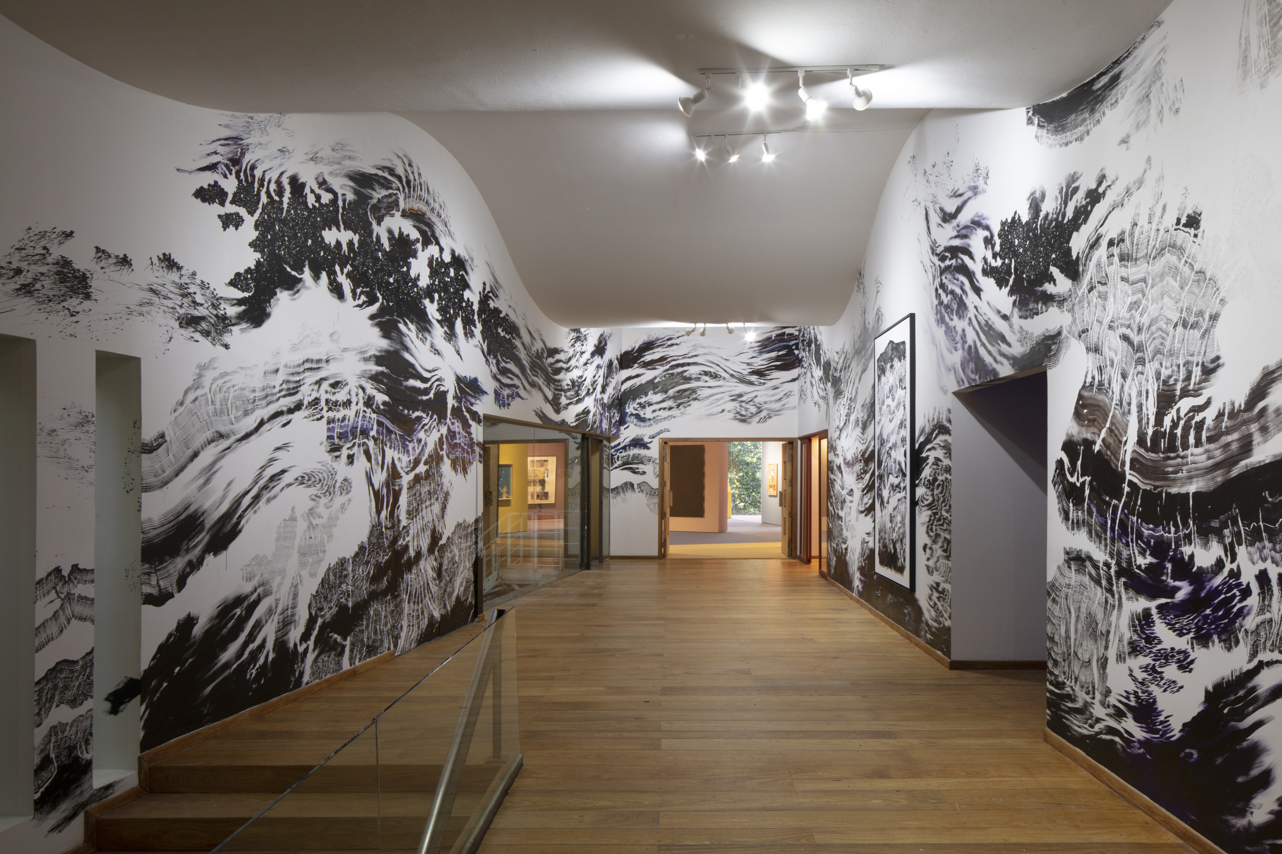 Ses vastes fresques éphémères sont réalisées directement à l’encre sur les murs, transformant les architectures en un ailleurs, un monde de flux et de paysages mentaux, entre le reconnaissable et l’indiscernable, à la frontière entre le physique et le symbolique. Réflexion sur les ressorts de la perception, ses œuvres explorent nos systèmes de connaissance, la survivance des mythes et des croyances, mais aussi les réminiscences, persistances rétiniennes ou neuronales que ce soit sur les murs des musées ou sur des feuilles de papier.