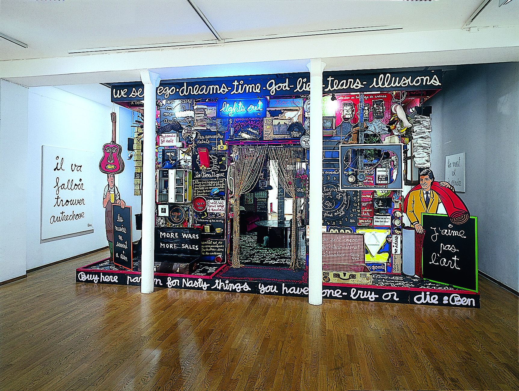 Le « Bizart Bazart » a été réalisé en six mois pour l’exposition « Shopping : a century of art and consumer culture» qui examinait la notion de consommation et ses relations à l’art contemporain (Schirn Kunsthalle Francfort et Tate Modern Liverpool). Pour ce projet, exposé pour la première fois en France, Ben a choisi de bâtir une cabane construite comme un puzzle d’objets, de jouets animés, de tableaux, et de slogans, dans laquelle les visiteurs sont invités à circuler.