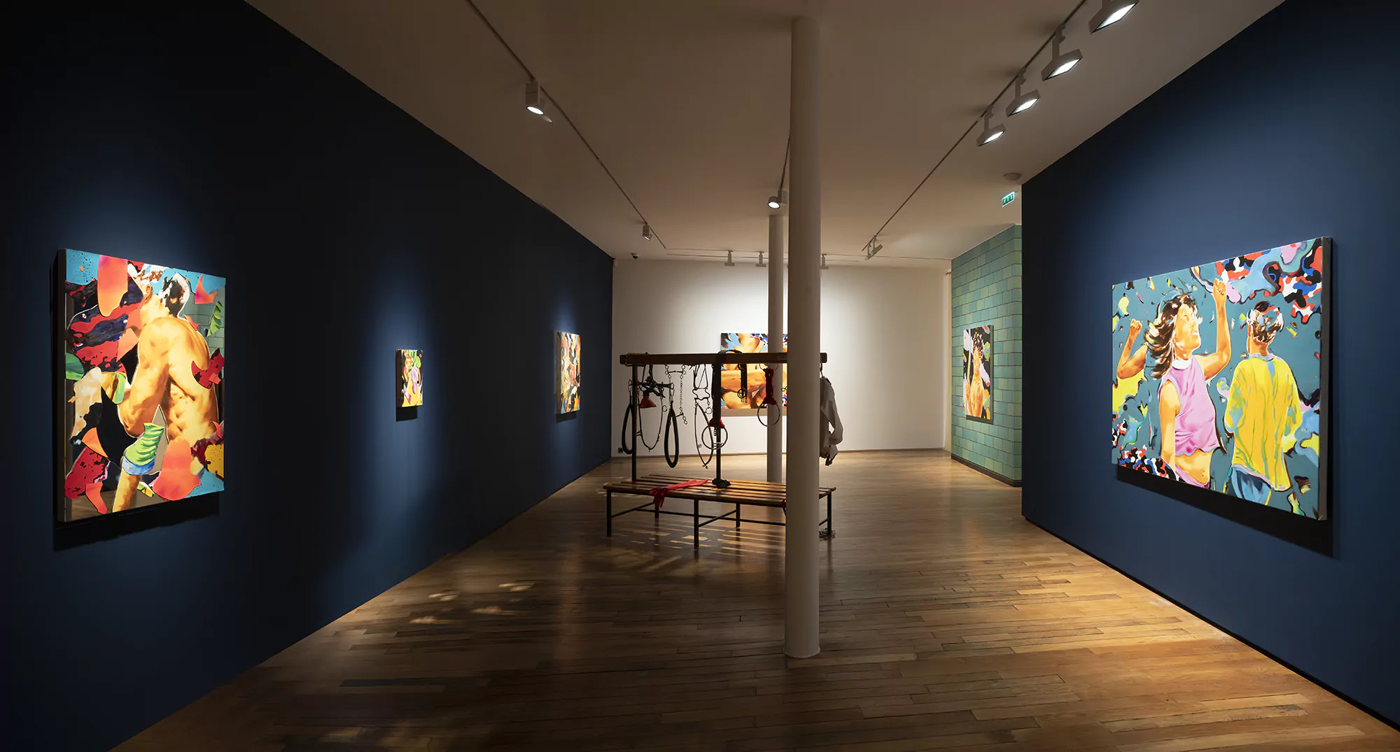 Avec cette nouvelle série, Bisky choisit de troquer le bleu pastel de ses cieux pour des teintes sombres, et les sourires lumineux de ses modèles pour des traits plus graves. On retrouve dans ces drames baroques, les mannequins au teint hâlé, évocateurs de la propagande communiste qui a marqué la jeunesse de l’artiste en RDA. A leurs côtés, les noctambules, hipsters et marginaux qui peuplent chaque soir les rues des quartiers obscurs de Berlin Friedrichshain, flottent parmi les façades post-industrielles caractéristiques de ce lieu incontournable des amoureux de la nuit.
