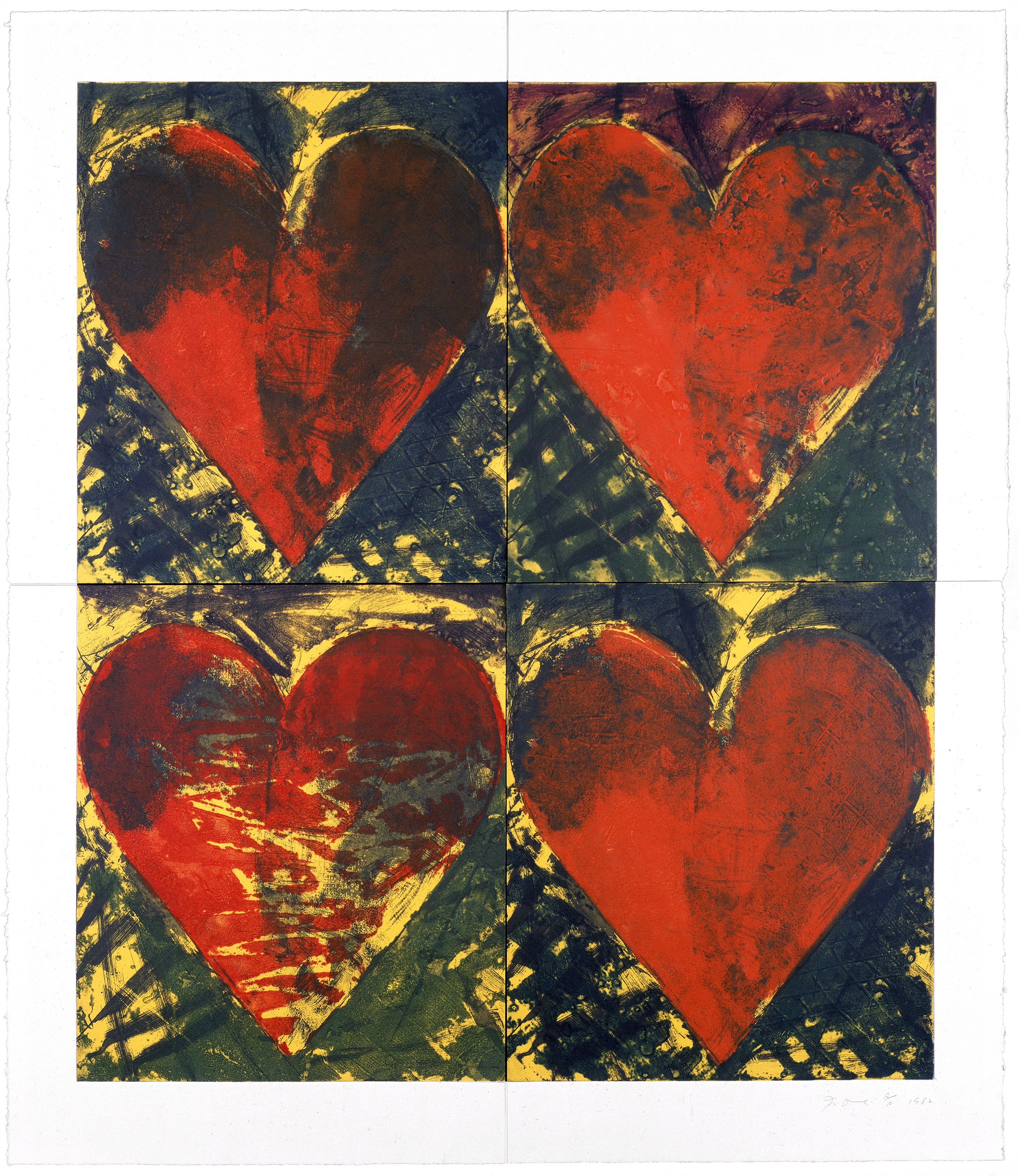 Né en 1935 à Cincinnati dans l’Ohio, Jim Dine vit et travaille entre Paris, Göttingen en Allemagne et Walla Walla aux États-Unis. Pionnier du happening et compagnon du Pop Art, il emprunte une voie singulière. Grand expérimentateur de techniques, il travaille le bois, la lithographie, la photographie, le métal, la pierre ou la peinture. L’outil et le processus de création sont aussi cruciaux que l’œuvre achevée. L’artiste explore les thèmes du soi, du corps, de la mémoire à travers une iconographie personnelle composée de cœurs, de veines, de crânes, de Pinocchio et d’outils.
