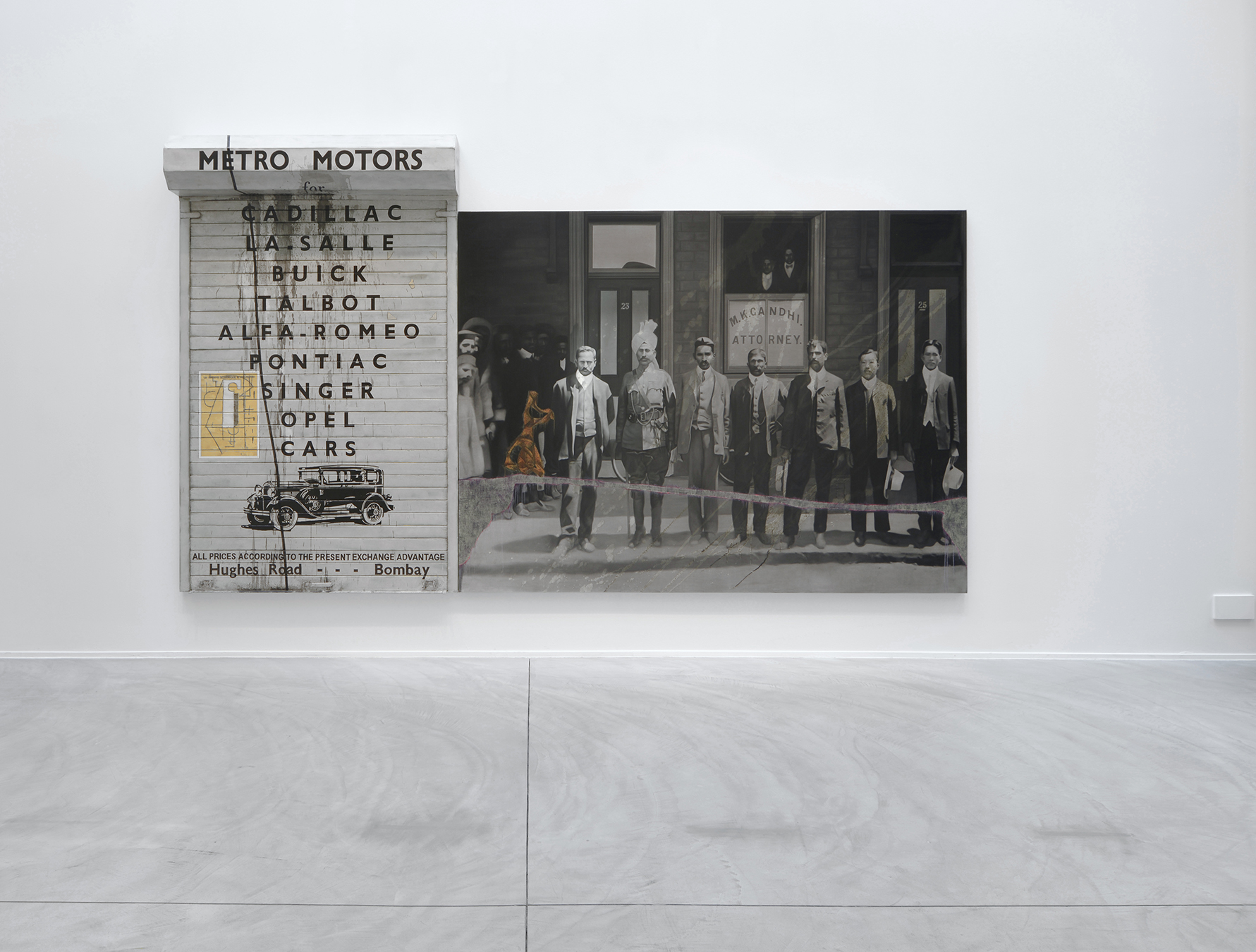 Atul Dodiya confronte deux moments simultanés de l’histoire : la lutte pour l’indépendance de l’Inde entre 1910 et 1947 et les fondements de la modernité artistique en Europe. Chaque oeuvre combine un épisode de la lutte de Gandhi et les créations contemporaines d’artistes tels que Picasso, Mondrian ou Malevitch. Cette association complexe mêlant peinture et photographie remet en cause la distinction entre copie et original, tradition orientale et occidentale. Atul Dodiya a été le premier à jeter des ponts entre histoire de l’art indien et occidental.