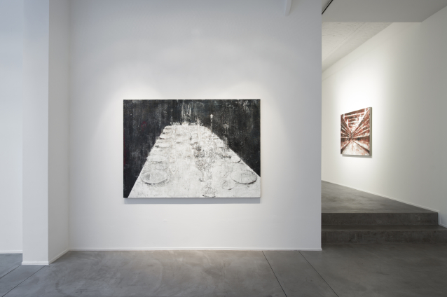 A partir de polaroids ou de photographies tirés de ses archives personnelles, Philippe Cognée fixe sur la toile des lieux quittés depuis longtemps : chambre d’hôtel, table dressée pour un repas de fête, coin de bibliothèque, lit défait. Entre nature morte et abstraction, ces souvenirs recomposés questionnent les liens entre peinture et mémoire. Le peintre poursuit sa démonstration du pouvoir de la peinture, sa capacité à transcender le quotidien. Il cherche ainsi à revivifier l’image dans une société qui, par sa surconsommation, conduit à son épuisement.