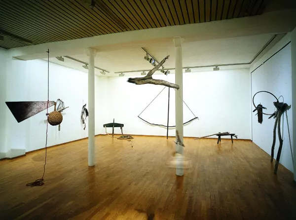 Claude Viallat est né en 1936 à Nîmes, où il vit et travaille aujourd’hui. Il est l’un des fondateurs de « Supports/Surfaces » dans les années 1970, mouvement qui appelle à un renouvellement de l’art par la remise en question des matériaux traditionnels. Viallat commence ainsi à travailler sur des bâches industrielles, sur lesquelles il répète à l’infini une même forme abstraite, sorte d’osselet devenu sa signature. Répété au pochoir sur divers supports, ce motif ouvre une réflexion sur le sens du geste créatif et le statut « d’œuvre d’art ».