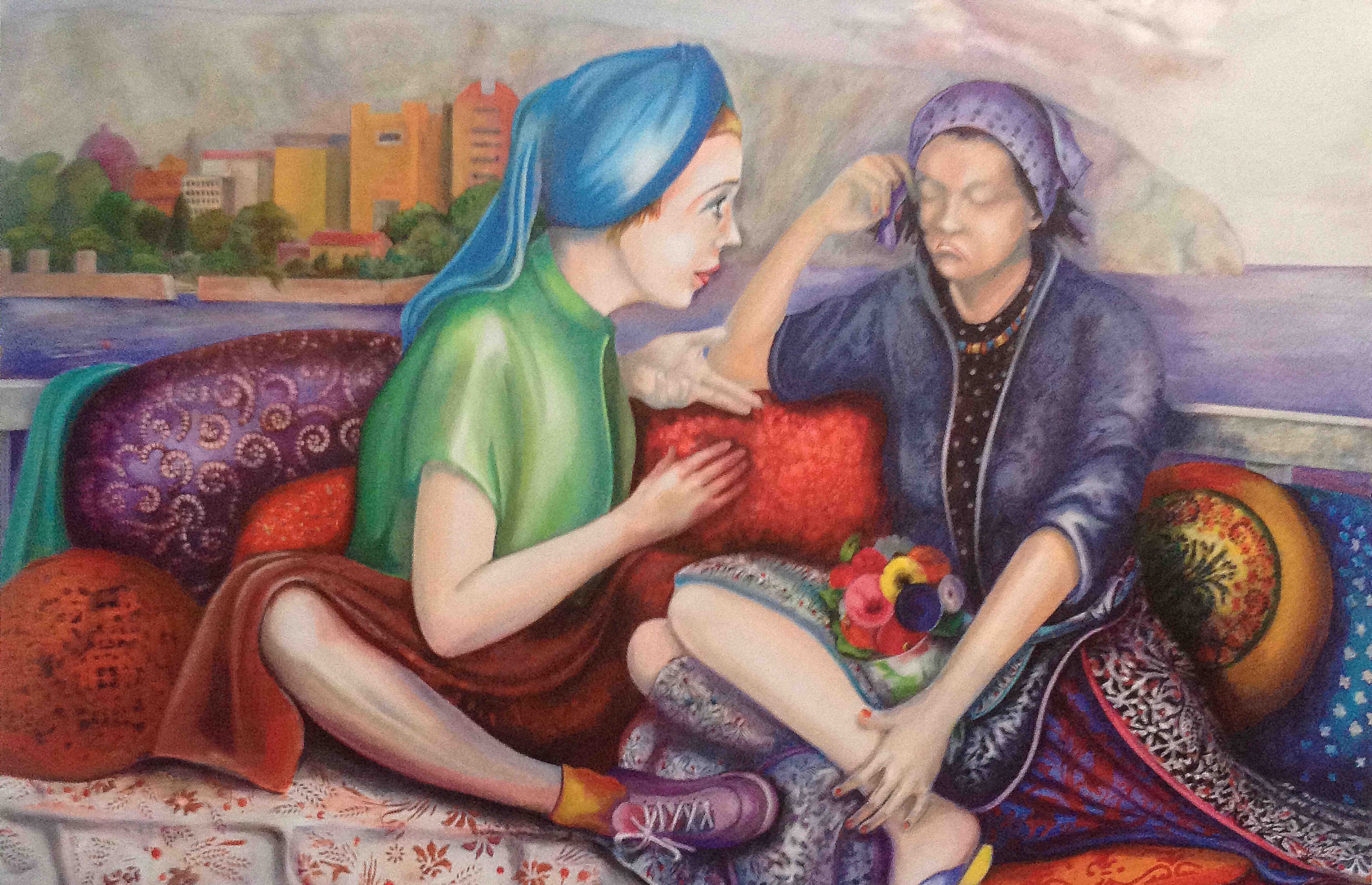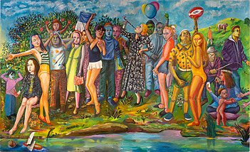 Durant ces années de recherche, Martial Raysse a engagé un dialogue soutenu avec les maîtres anciens. La Peur et La Paix résonnent ainsi avec les panneaux que Picasso avait conçus pour la chapelle du château de Vallauris, tout en rendant hommage à d’autres figures tutélaires, telles que Jean Fouquet ou Nicolas Poussin.Les cohortes de visages mi-rayonnants, mi-amers qui peuplent aujourd’hui l’espace de la galerie témoignent d’un sens aigu de la composition et d’une attention constante portée à la symbolique des gestes. Un chat noir, une main fleurie, un poignard tapi dans l’ombre : chez Raysse, chaque détail compte. Il nous fait glisser d’un récit à l’autre, multipliant les niveaux de lecture et révélant, par strates successives, les tensions et les enjeux du monde contemporain.