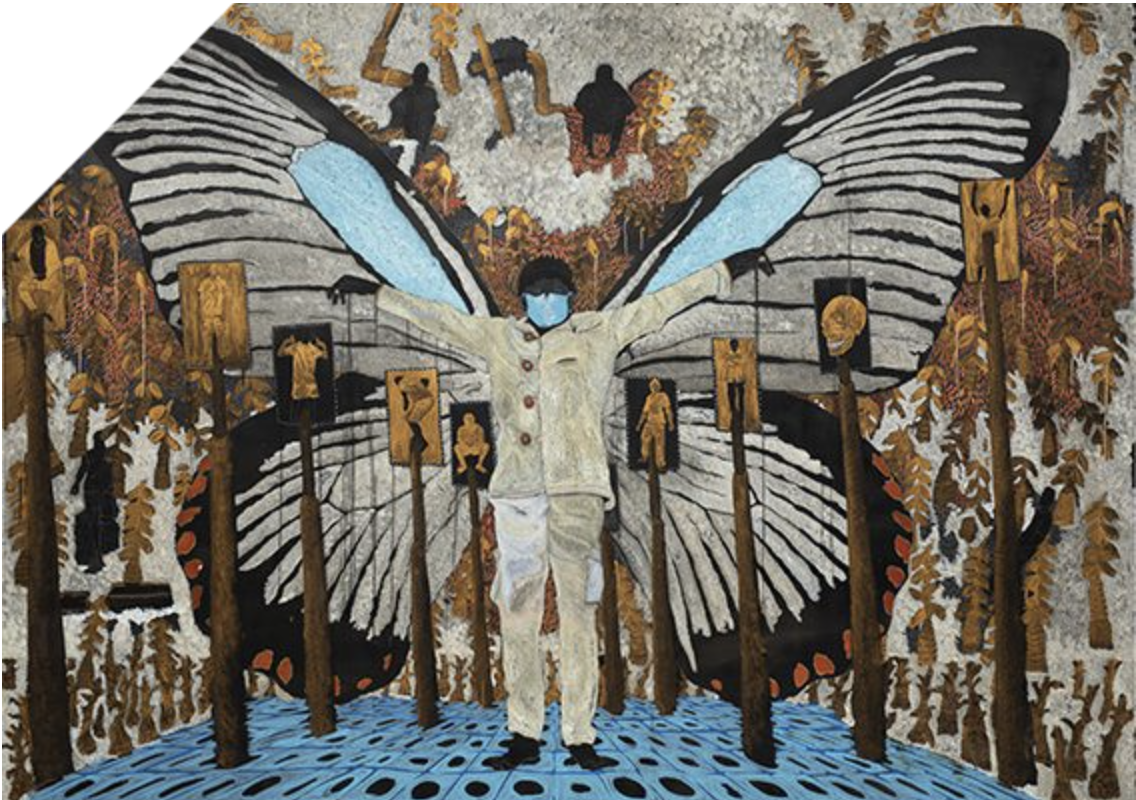 Né au Sénégal en 1977, Omar Ba vit et travaille à Dakar. Ses peintures – réalisées à l’aide de techniques et de matériaux variés – représentent des motifs politiques et sociaux aux multiples interprétations. Son vocabulaire plastique réactive des interrogations historiques et atemporelles tout en élaborant un propos artistique d’une absolue contemporanéité. L’iconographie d’Omar Ba mobilise des métaphores personnelles, des références ancestrales et des figures hybrides. Son travail refuse une narration didactique et cherche, par son caractère énigmatique et son intensité poétique, à exprimer son inconscient et son appréhension symbolique du réel.