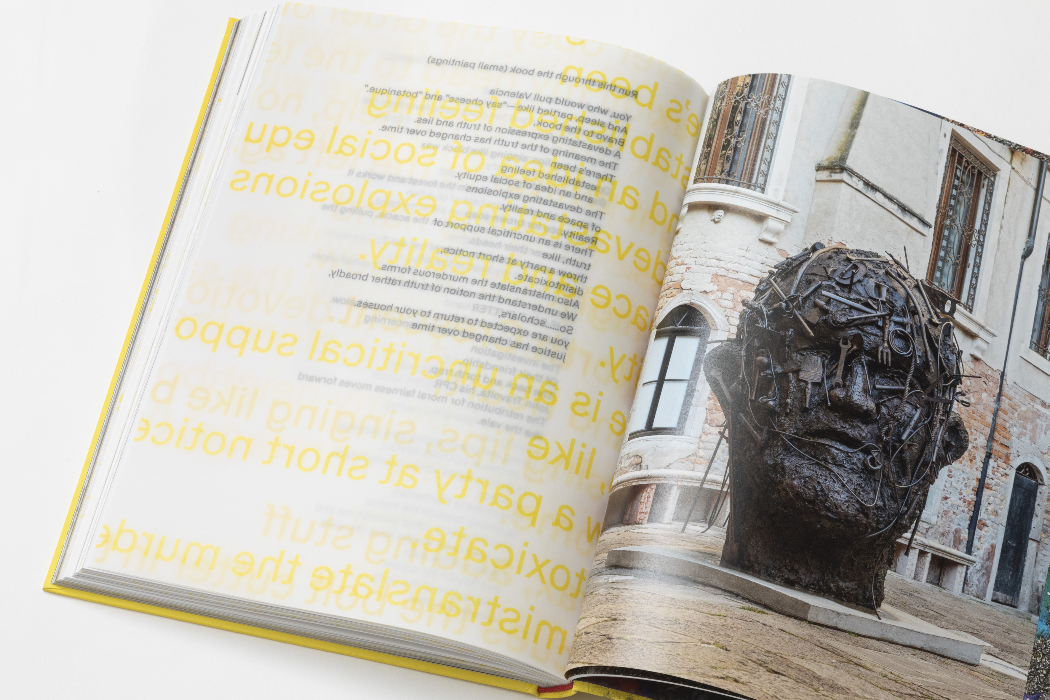 « Contrairement aux artistes qui se concentrent sur un seul médium, Jim, depuis ses premières œuvres réalisées alors qu’il était encore au lycée, a – au cours de sept décennies) exploré et méprisé respectueusement les matériaux et les processus. Il porte cette approche à une nouvelle intensité dans son exposition Dog on the Forge au Palazzo Rocca, un événement collatéral de La Bienna di Venezia. Ici, Jim réinvente certains de ses motifs les plus appréciés, notamment les pinocchios, les sculptures antiques, les cœurs et les outils, le tout dans des combinaisons éclectiques de supports tels que le bronze peint et le collage sur toile. »