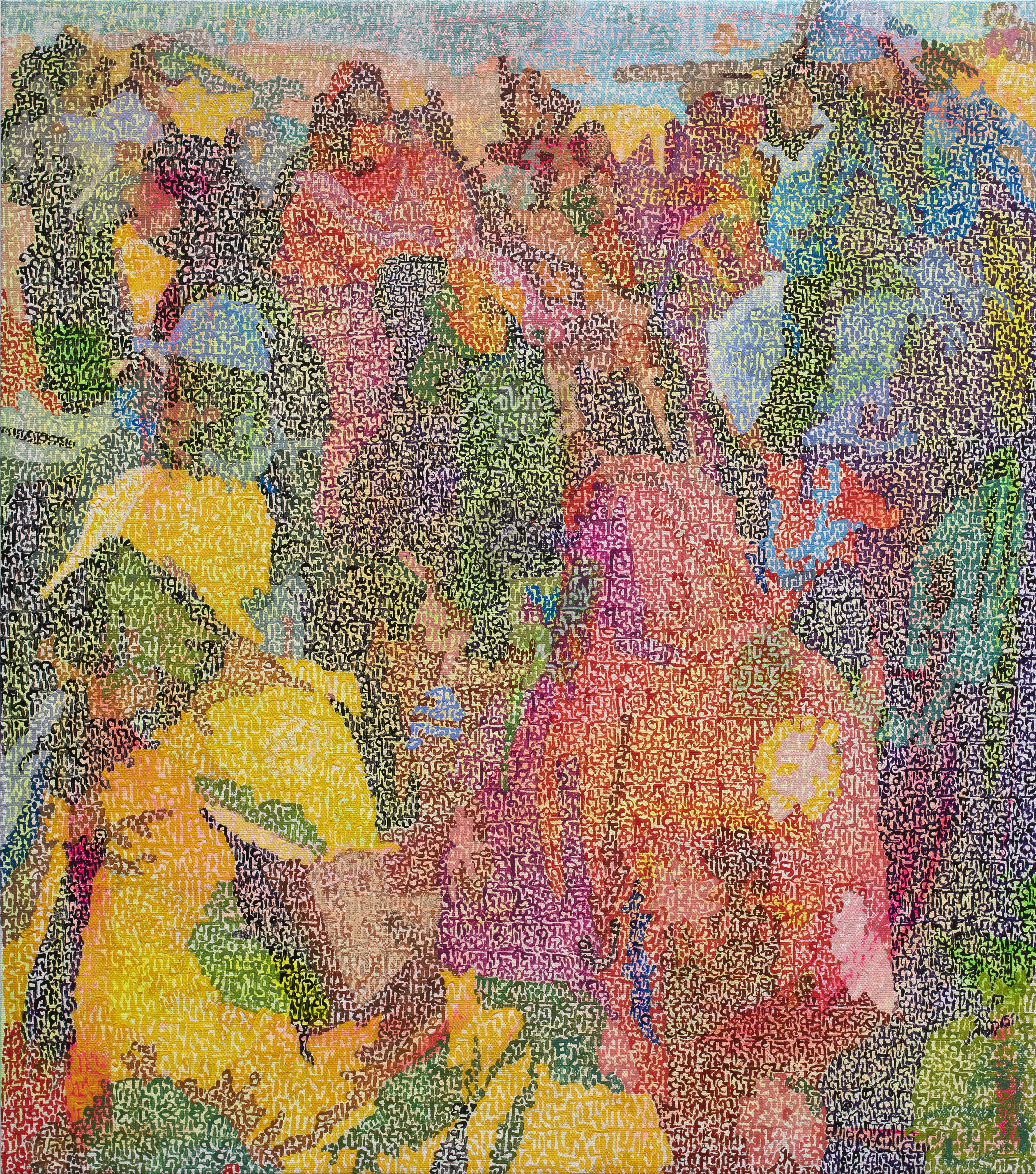 Born in 1985 in Kaffrine, Senegal, Alioune Diagne lives and works in Senegal and France. After studying at the Dakar École des Beaux-Arts in 2008, Alioune Diagne developed an imaginary script as a universal language and intimate account of fragments of his life in Dakar and on his travels. A socially engaged artist, he opens the door to a deep-seated exploration of the major challenges facing the world today: ecology, the place of women in society, racism and the notions of transmission and heritage. His work has featured in a variety of solo and group exhibitions in Europe, Africa and Asia since 2011, including Sink or Swim at the 11th Dakar Biennale, Villa Spivey, Dakar, Senegal (2014), Itinéraire en Couleurs at Espace Jean Drevon, Saint-Jean-de-Bournay, France (2014), the