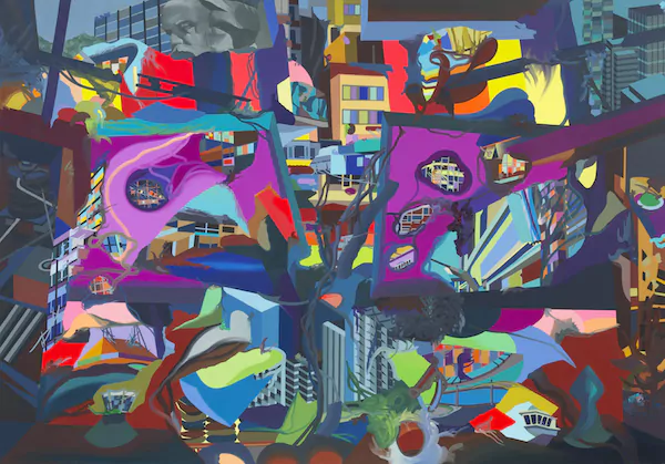 Born in 1963 in Germany, Franz Ackermann lives and works between Berlin and Miami. Travel as an experience, displacement and observation are the notions at the heart of his paintings and installations. Ackerman’s exuberant works with their saturated colours are inhabited with overlapping forms that merge with fragments of images taken directly from urban reality. Globalisation and the issue of tourism also play an important part in his artistic explorations.