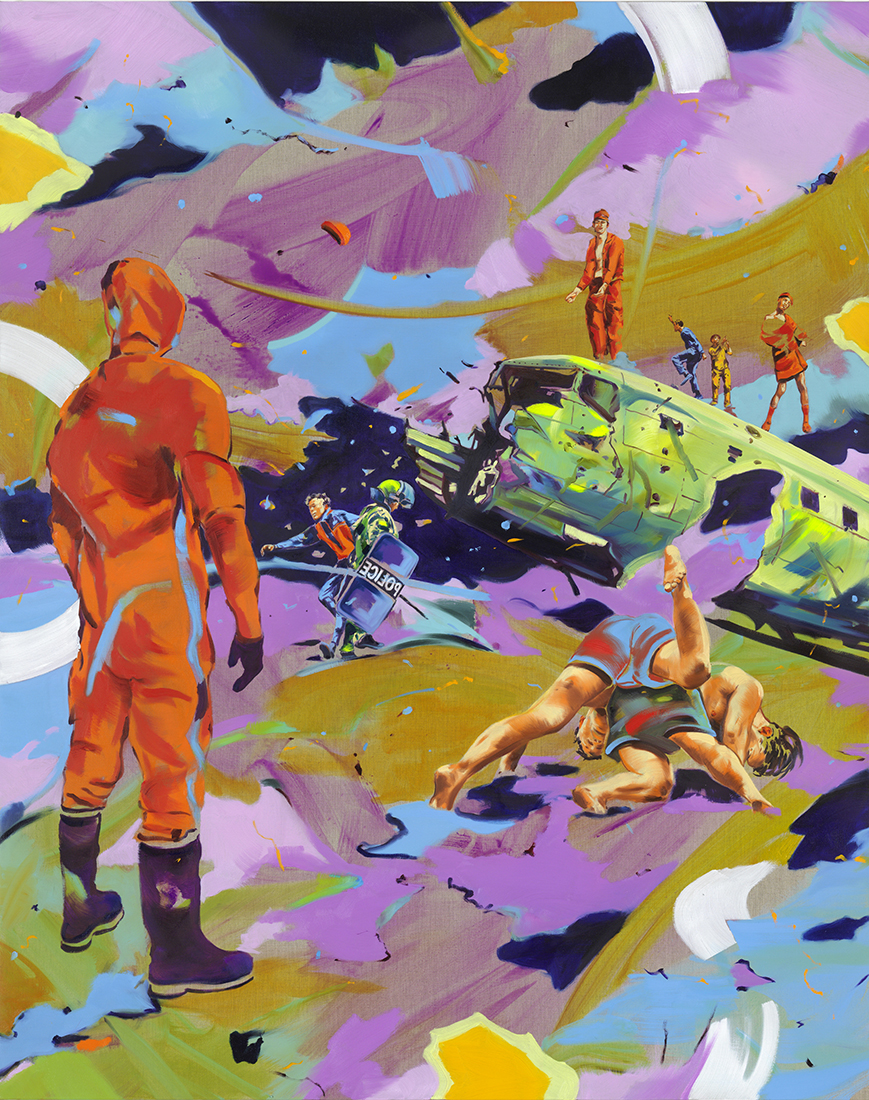 Norbert Bisky was born in 1970 in Leipzig, Germany. His treatment of landscapes and exploration of the portrait and narrative structure place him firmly in the tradition of great European painting. But Norbert Bisky's experiments with breaking down forms and with blocks of colour also place him on the borderline of abstract art. His figurative style of painting, conjuring up the socialist realism he experienced as a child in GDR, suggests both hedonism and chaos in its contemporary form.