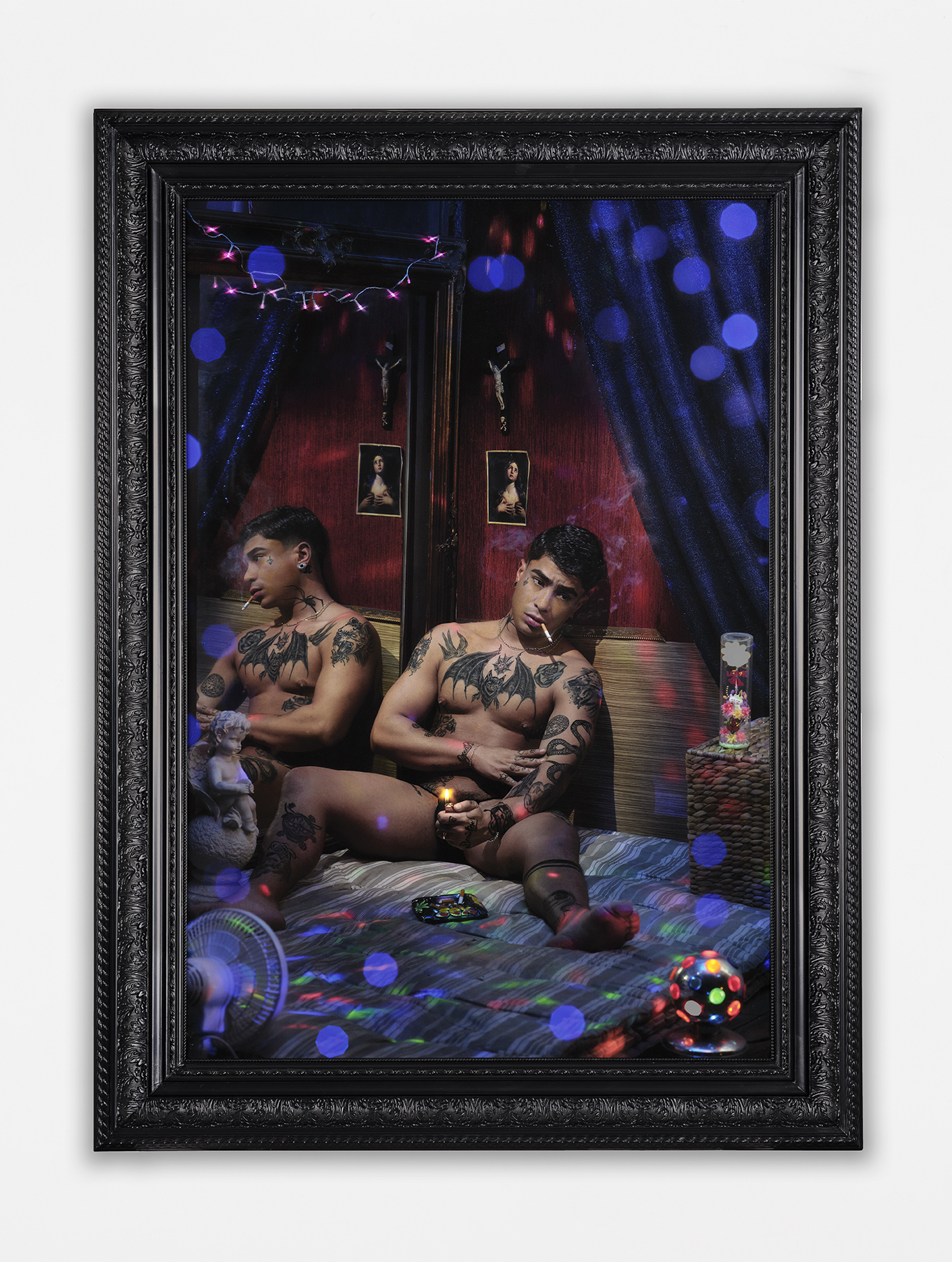 Pierre was born in 1950 in La Roche-Sur-Yon, Gilles in Le Havre in 1953. They are internationally renowned artists who have been producing works together since 1976, creating a world where painting and photography meet. Their art is peopled by their friends and family, anonymous and famous, who appear in sophisticated life-size sets the artists build in their studio. They meticulously apply paint to the photographs once printed on canvas. Accomplished image creators, Pierre and Gilles have built up an extraordinary contemporary iconography on the frontier between art history and popular culture.
