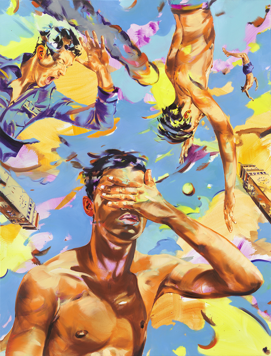 Norbert Bisky was born in 1970 in Leipzig, Germany. His treatment of landscapes and exploration of the portrait and narrative structure place him firmly in the tradition of great European painting. But Norbert Bisky's experiments with breaking down forms and with blocks of colour also place him on the borderline of abstract art. His figurative style of painting, conjuring up the socialist realism he experienced as a child in GDR, suggests both hedonism and chaos in its contemporary form.