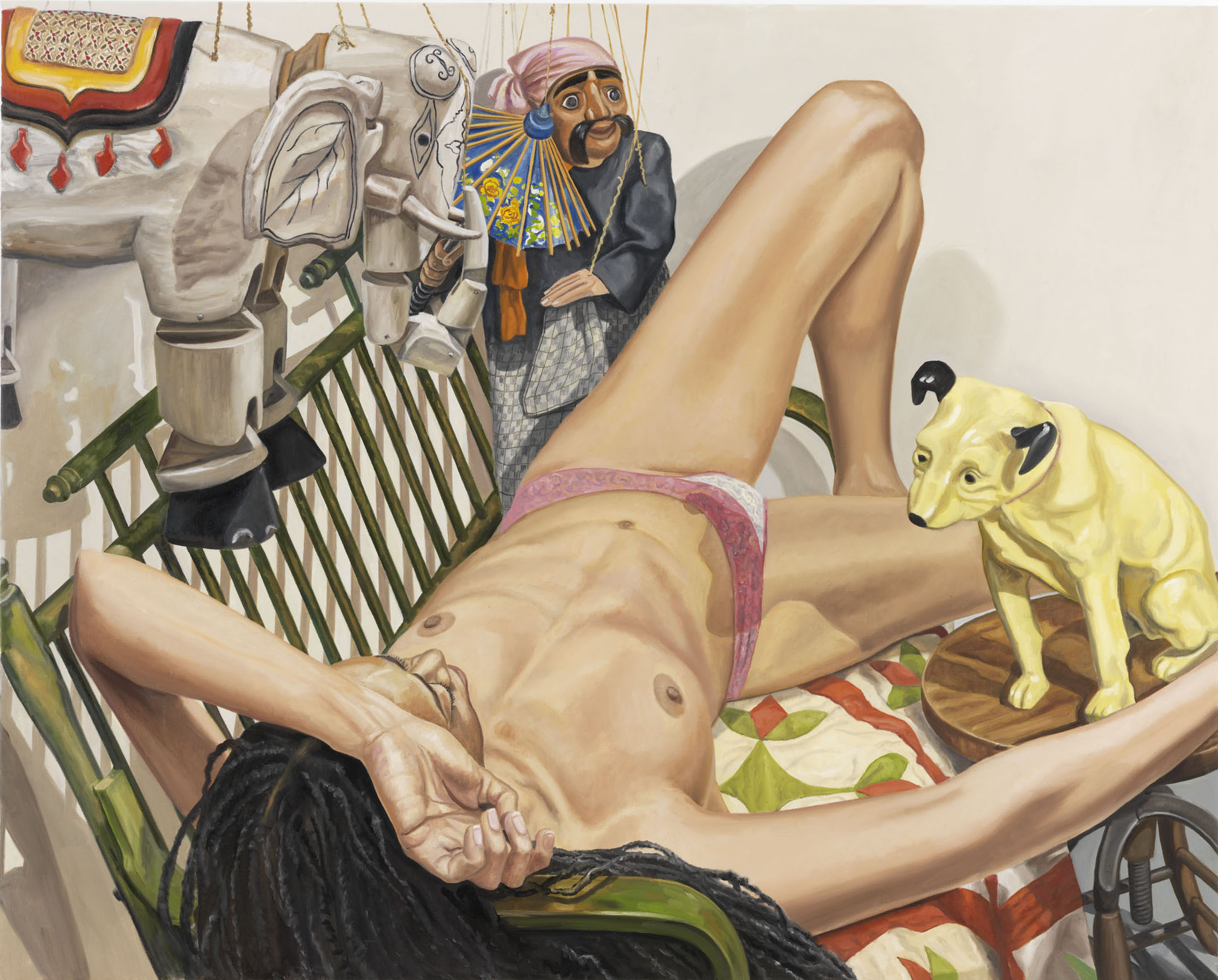Born in 1924 in Pittsburgh, Pennsylvania, USA, Philip Pearlstein died in 2022. He is considered to be one of the masters of new figuration and modernist realism. He has been examining the question of how the model is represented since the 1960s, his complex works straddling the line between naturalism, abstraction and hyperrealism. His still lives in oil feature nudes with mask-like expressions, often women, in carefully arranged interiors.