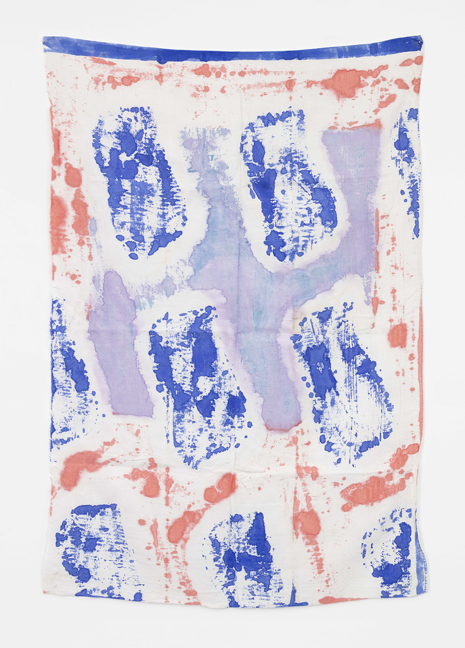 Claude Viallat was born in 1936 in Nimes, France, where he continues to live and work. He is one of the founders of the Supports/Surfaces movement in the 1970s, which called for art to renew itself through a deconstruction of traditional materials. Viallat started to work on industrial tarp, endlessly repeating the same abstract pattern, resembling a small bone, which became his signature. Stencilled repeatedly onto a range of supports, the pattern asks us to reflect on the meaning of the creative act and the status of the work of art.