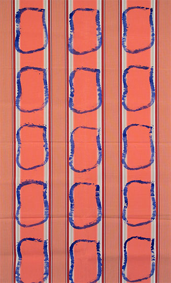 Claude Viallat was born in 1936 in Nimes, France, where he continues to live and work. He is one of the founders of the Supports/Surfaces movement in the 1970s, which called for art to renew itself through a deconstruction of traditional materials. Viallat started to work on industrial tarp, endlessly repeating the same abstract pattern, resembling a small bone, which became his signature. Stencilled repeatedly onto a range of supports, the pattern asks us to reflect on the meaning of the creative act and the status of the work of art.