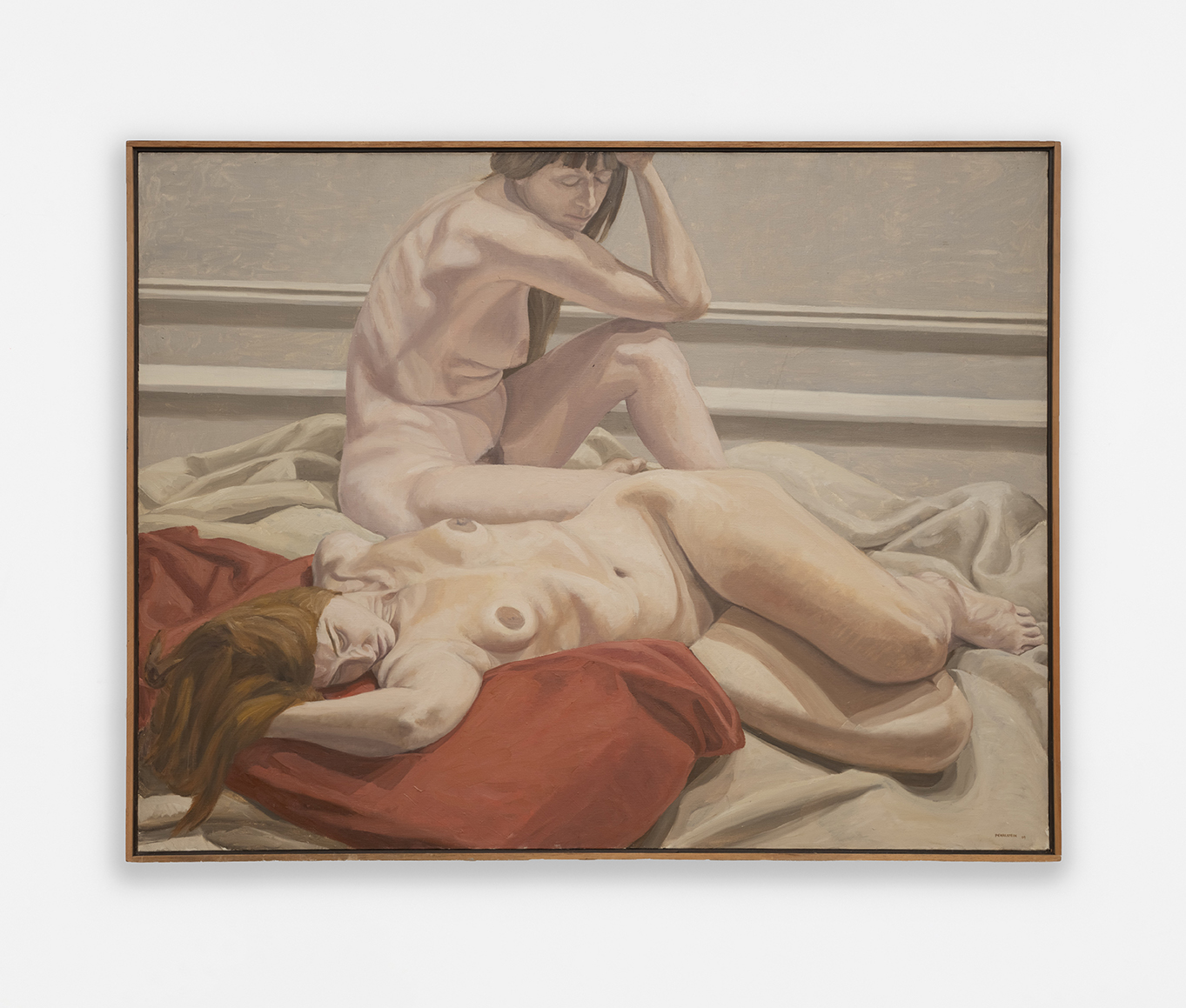 Born in 1924 in Pittsburgh, Pennsylvania, USA, Philip Pearlstein died in 2022. He is considered to be one of the masters of new figuration and modernist realism. He has been examining the question of how the model is represented since the 1960s, his complex works straddling the line between naturalism, abstraction and hyperrealism. His still lives in oil feature nudes with mask-like expressions, often women, in carefully arranged interiors.
