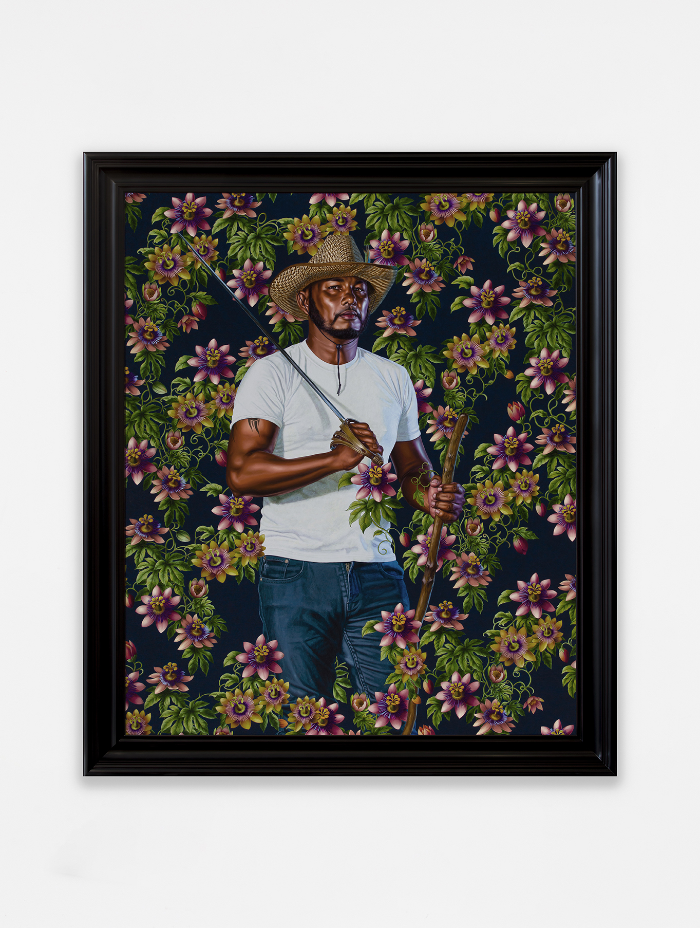 Born in 1977 in Los Angeles, Kehinde Wiley lives and works in New York. Examining issues of racial and sexual identity, his works create collisions where art history and street culture come face to face. The artist makes eroticised heroes of the invisible, those traditionally banished from representations of power. His work reinterprets the vocabulary of power and prestige, part politically-charged critique, part an avowed fascination with the luxury and bombast of Western symbols of male domination.